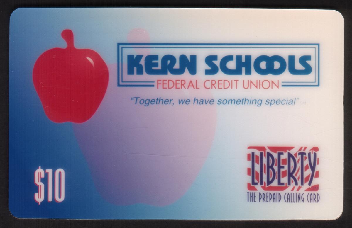 This collectible chip card features the logo of Kern Schools Federal Credit Union prominently displayed on the left side. To the right, there is a bright red apple graphic with a small green leaf on top, symbolizing education and growth. The card background is white, allowing the logo and apple to stand out clearly. Near the top right corner, the name "Quest Group Internatl" is printed in uppercase letters.