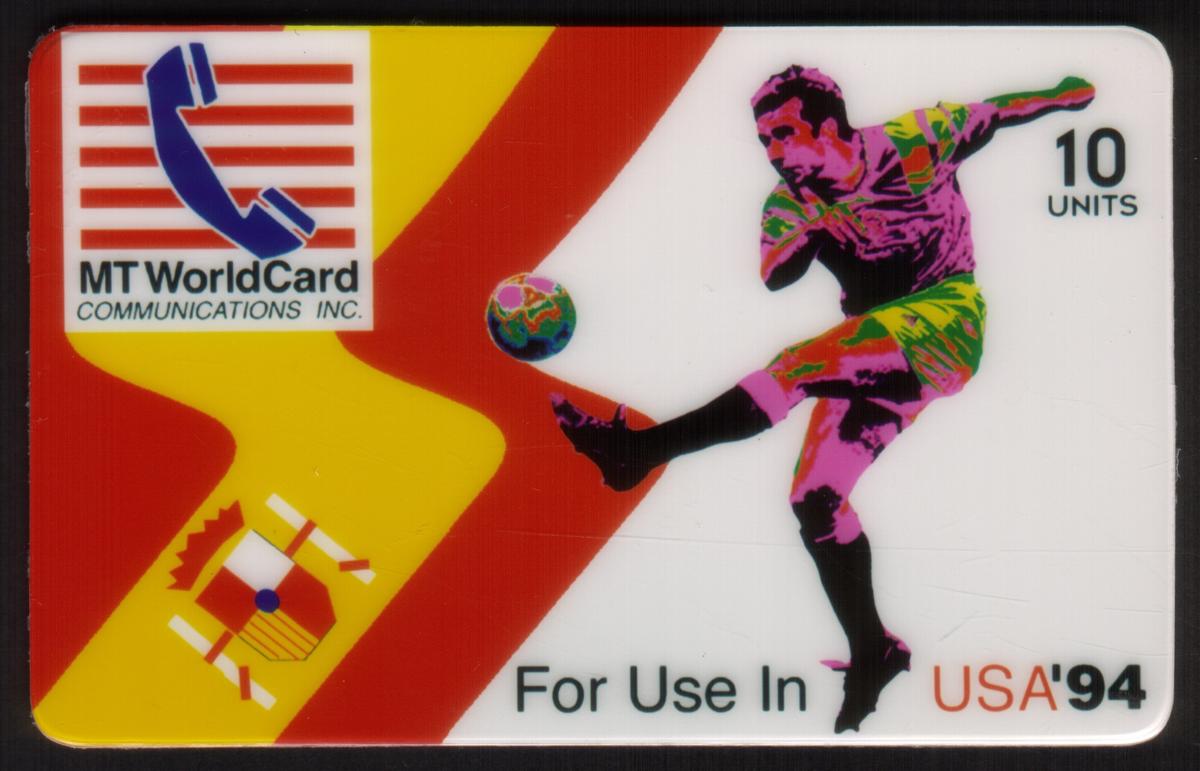Overall, this phone card is a collector’s item capturing the spirit of soccer, Spanish pride, and the 1994 World Cup through its detailed artwork and clear textual references.