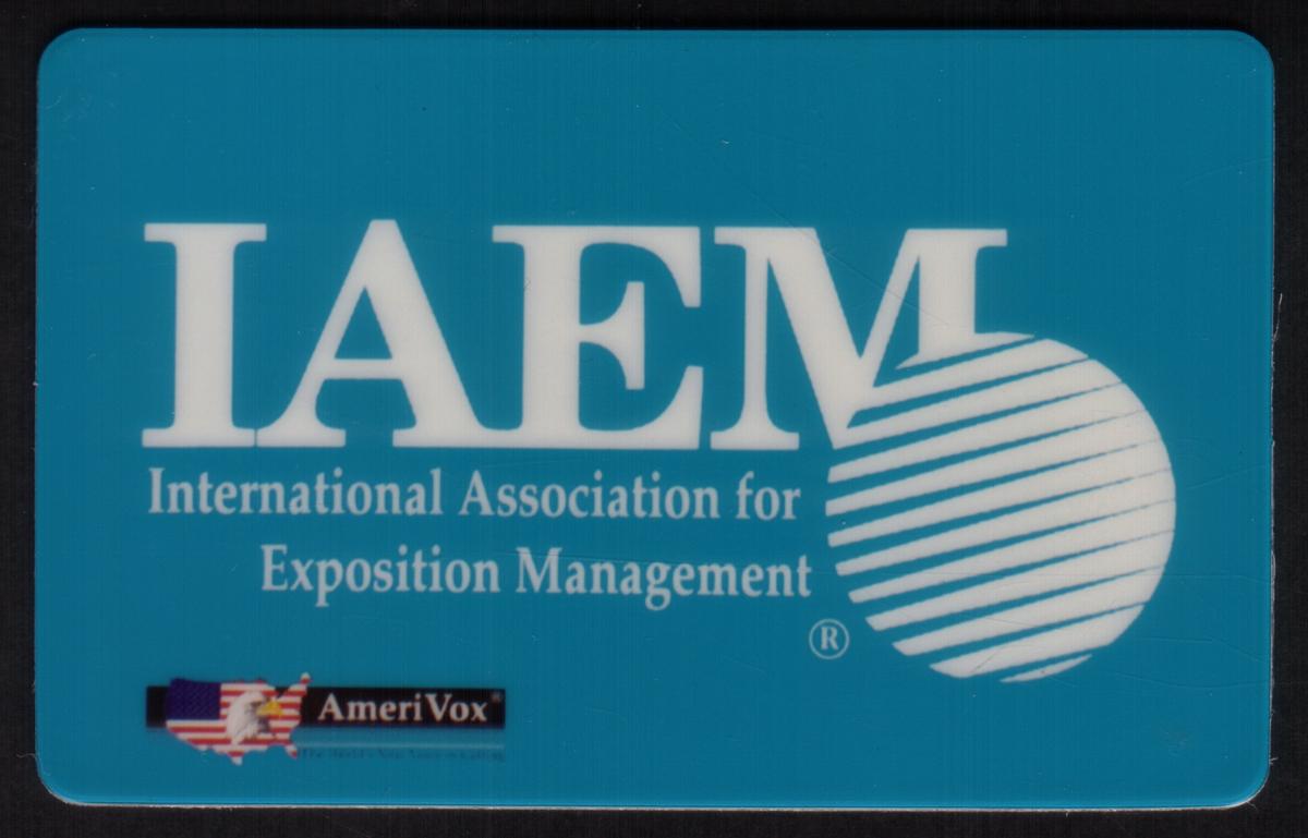 This phone card was issued for use or promotion at convention tables for IAEM, making it a piece linked to events within the exposition management industry. The overall presentation is clean and professional, intended to reflect the organization and its association with expos and conventions.