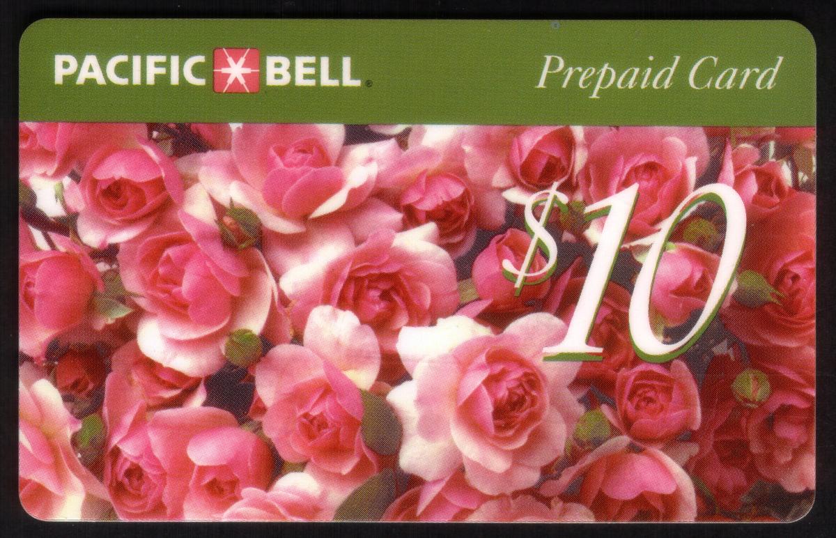 The card is issued by Spanish - Pacific Bell and prominently displays its $10 denomination in the upper right corner. Below the denomination, the words "1997 Mother’s Day Flowers" appear in both English and Spanish, highlighting the bilingual nature of the card. The Pacific Bell logo is present in the bottom left corner, linking the card to this telecommunications company.