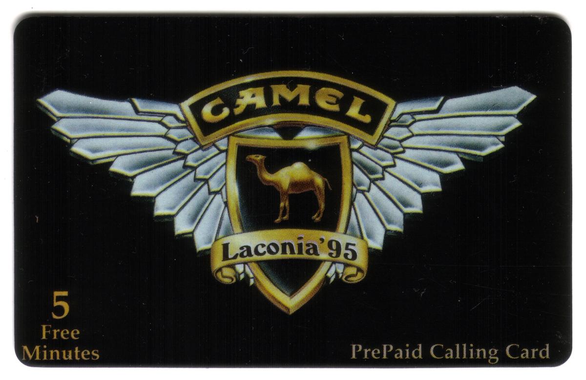 This card is a collector’s item that ties the Camel tobacco brand to a 1995 racing event in Laconia, showcasing the iconic camel logo and the event name prominently in the design.