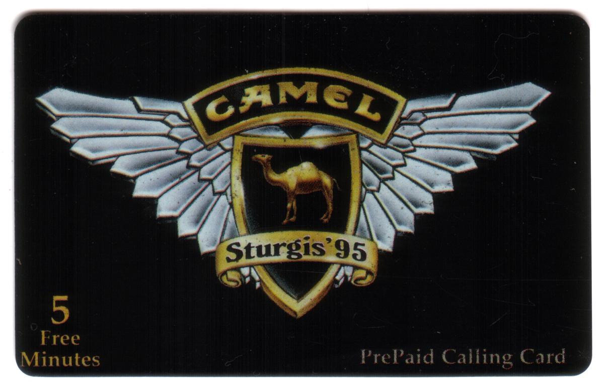 Overall, this card functions as an advertising collectible tied to Camel cigarettes, showcasing the brand’s association with the Finish Line Racing 5M event at the 1995 Sturgis motorcycle rally. It reflects branded promotion and collector interest specifically linked to RJ Reynolds Tobacco Company and its well-known mascot, Smokin' Joe Camel.