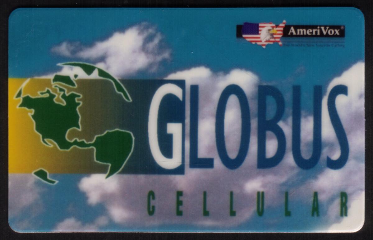 This phone card reflects a focus on cellular communication, featuring the Globus Cellular brand combined with AmeriVox. The card’s presentation is straightforward without additional imagery apart from the logos and text, highlighting its purpose as a collectible phone card tied to these companies in the telecommunications sector.