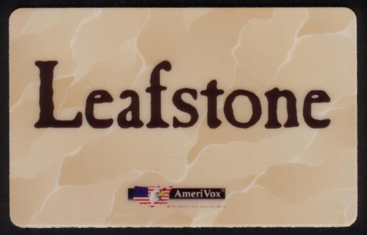 Prominently placed on the upper left corner is the logo and text “Leafstone PROOF,” accompanied by “AmeriVox” near the bottom right corner below the portrait. The card is branded with “WorldCom” in white text on a narrow orange vertical band along the left edge of the card. Additional smaller text states “PROMOTIONALS” and “COMPLIMENTARY” near the upper edge. The overall design emphasizes corporate branding combined with cultural representation, aligning with the promotional and corporate logos keywords.