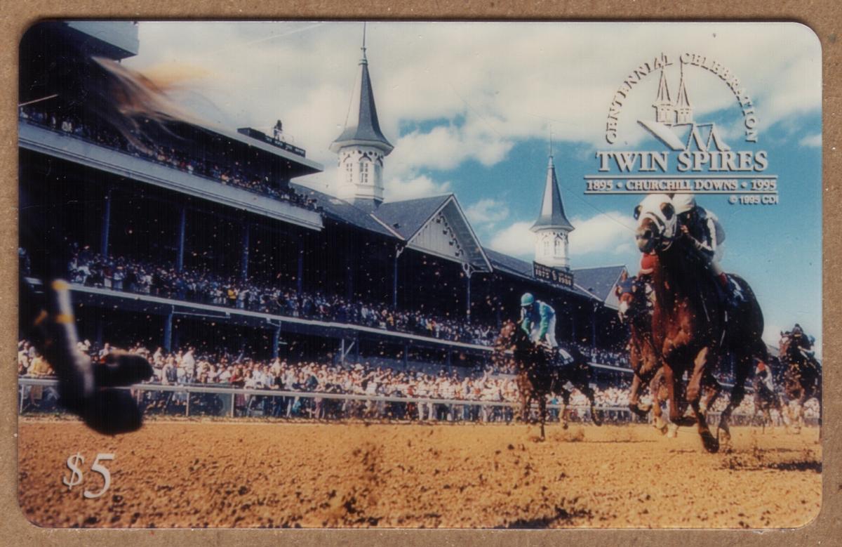 Overall, this card serves as a commemorative item honoring a century of horseracing tradition at one of America’s most storied racecourses, capturing both the visual and cultural significance of Churchill Downs during its centennial celebration.