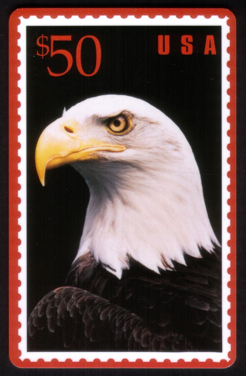 The overall design combines elements of philately and phonecard collecting. The use of postal stamp artwork alongside telecommunications branding marks this as a collectible item for enthusiasts interested in both stamp collecting and phonecards. The card’s visuals and text clearly connect it to the United States and its wildlife through the USPS Bald Eagle bird release.