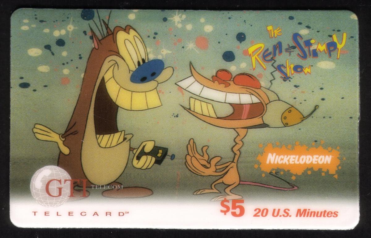 Overall, the design centers on the cartoon character Stimpy, with clean, bold animation lines and a colorful palette consistent with the style of the *Ren & Stimpy* show. This phone card celebrates the artistic and playful nature of the animation through its clear depiction of Stimpy’s Happy Helmet.
