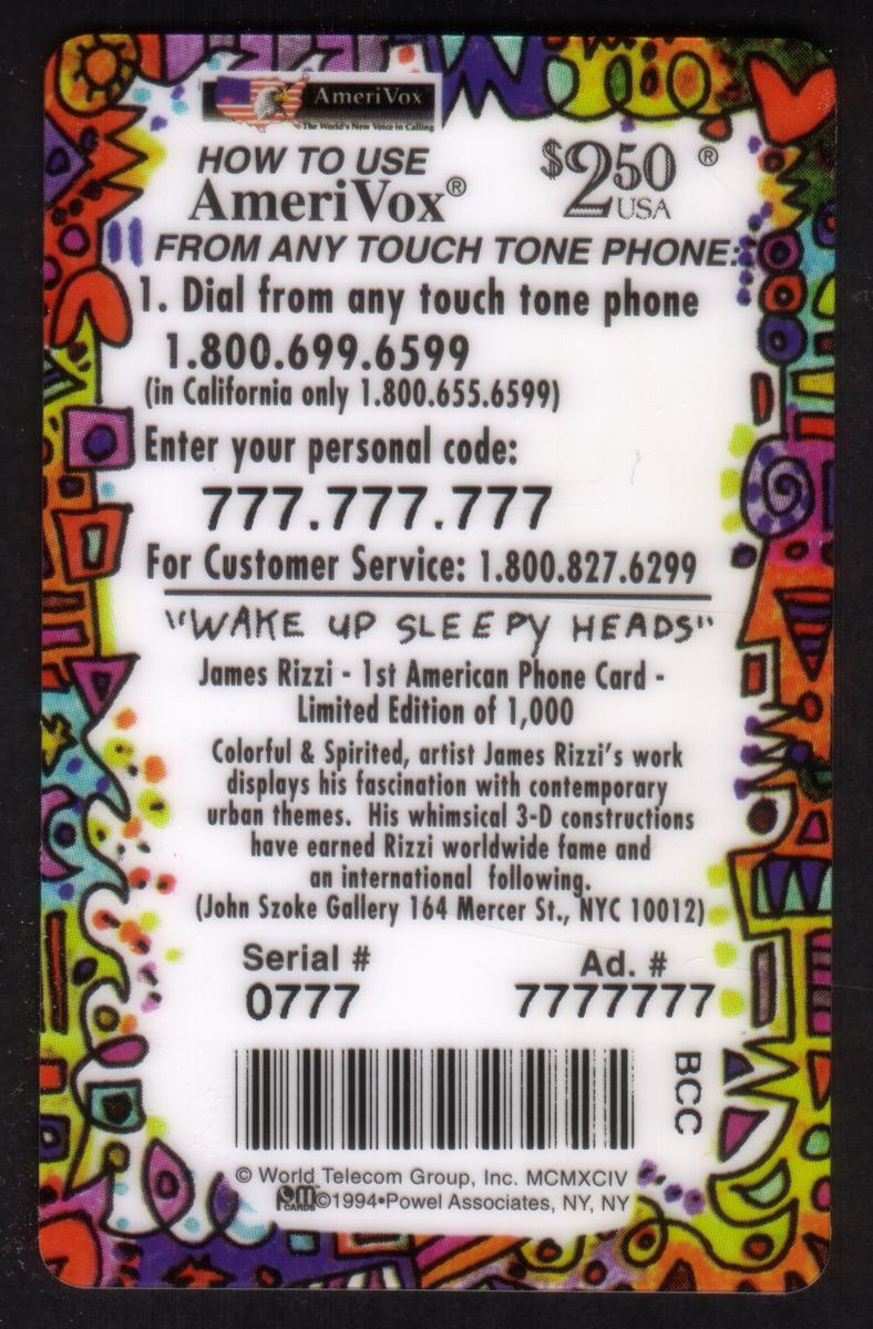 Since we have the world's largest inventory of USA phonecards for collectors, you will not necessarily receive the identical serial/batch/PIN number that we have scanned/pictured.