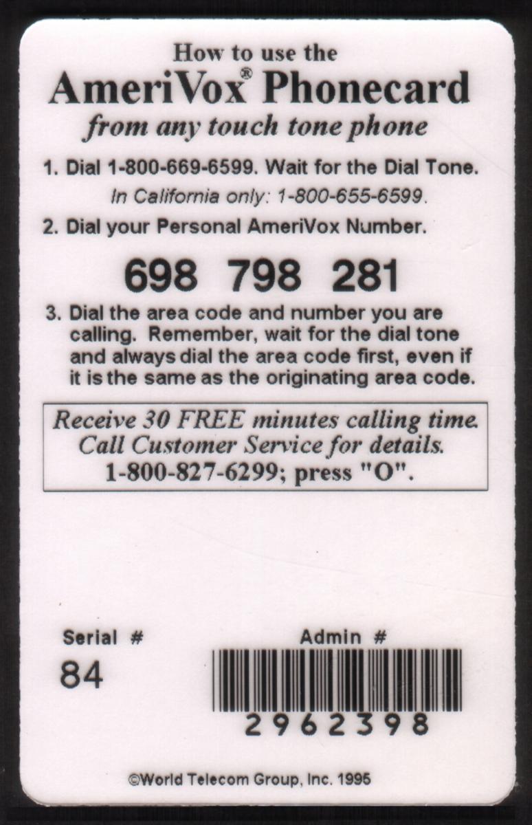 Since we have the world's largest inventory of USA phonecards for collectors, you will not necessarily receive the identical serial/batch/PIN number that we have scanned/pictured.