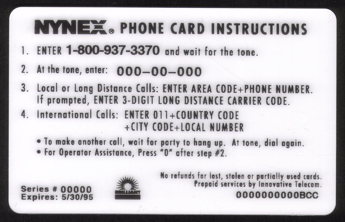 Since we have the world's largest inventory of USA phonecards for collectors, you will not necessarily receive the identical serial/batch/PIN number that we have scanned/pictured.
