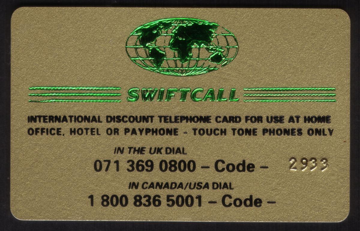 No additional characters, places, or images appear on the card aside from the SwiftCall brand name, the flat globe design, and the accompanying text "Their First USA Phone Card." The card clearly serves as a collectible phone card issued by SwiftCall and is designed with a professional, minimalistic style.