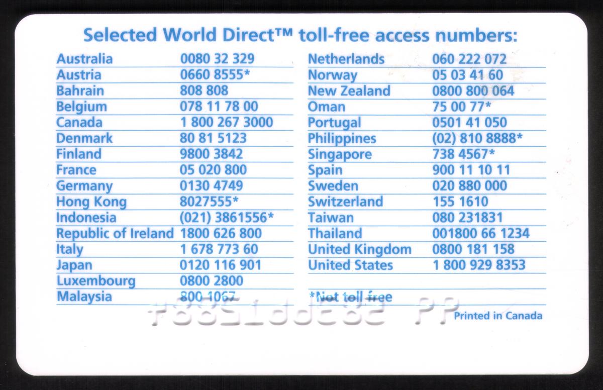 Keywords: Promotional, generic user card, map, issued 1993, World Direct