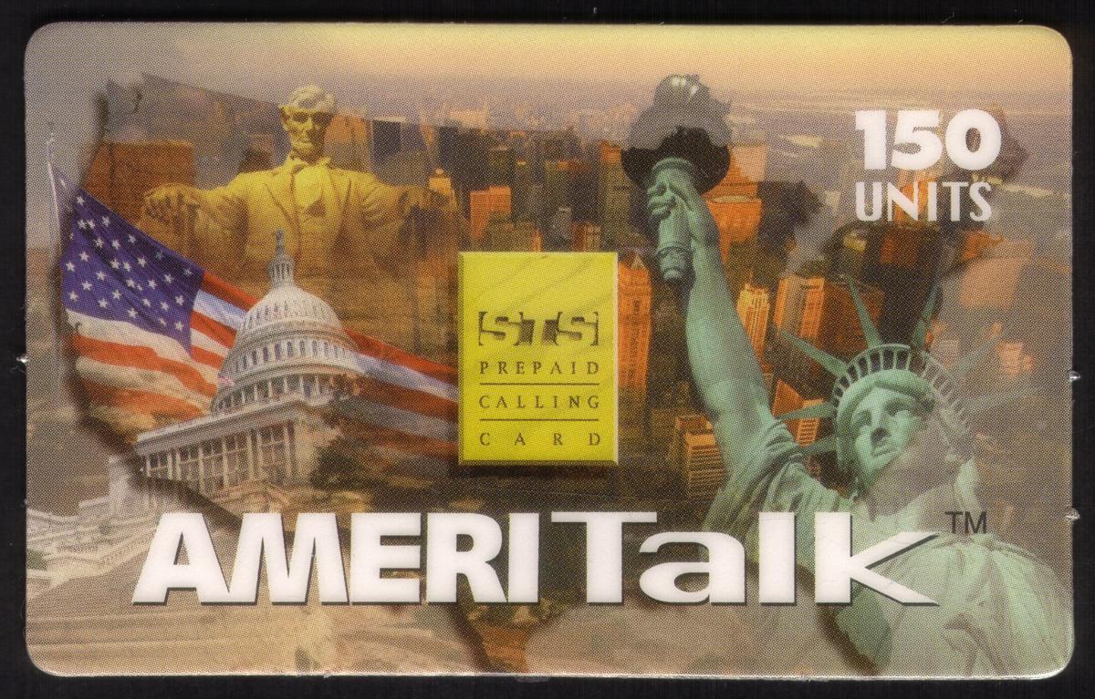 This chip card is a collectible phone card issued by Cable & Wireless under the AmeriTalk brand. It reflects themes of travel and sightseeing within the United States through its vibrant depiction of key monuments and national symbols.