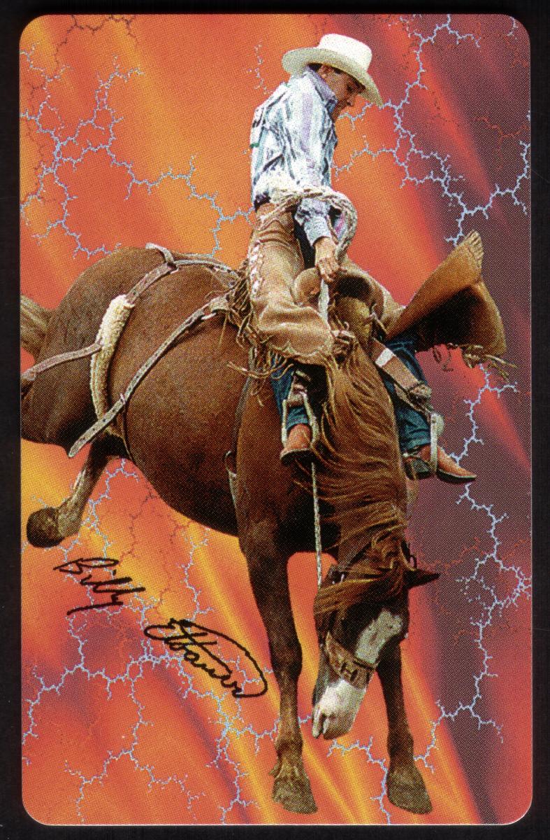 Text on the card identifies Billy Etbauer and highlights his achievement as the 1992 World Champion Saddle Bronc Rider. Additional thematic elements include references to rodeo sports, horses, and animals, underlining the card's focus on this specific event and athlete. The card also features the MCI and Champion Collectibles logos, confirming it as an officially licensed collectible by MCI.