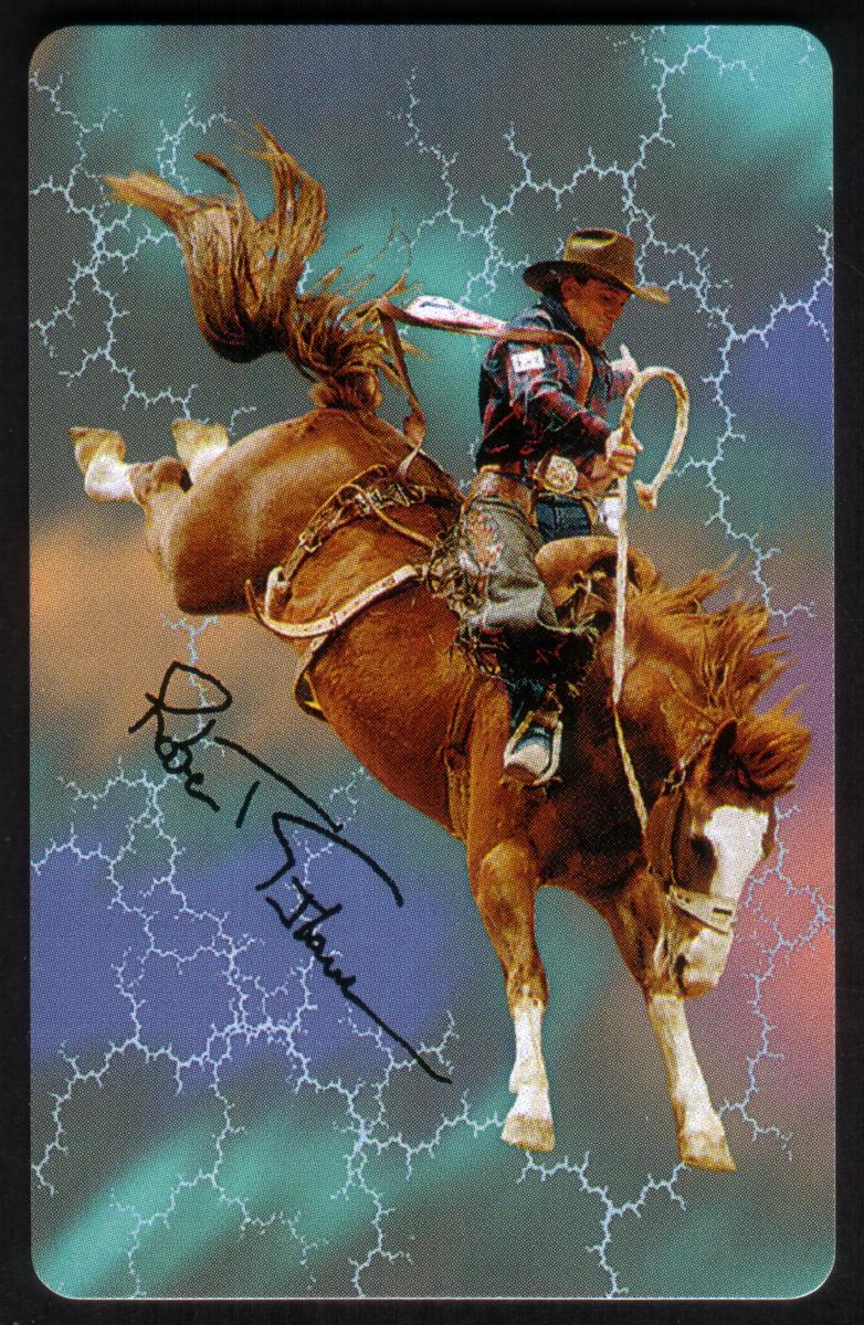 Presented in rich colors, the card’s design balances textual information and photographic imagery, with the main focus on the action shot of Robert Etbauer competing. The overall look and branding connect this collectible to rodeo enthusiasts and collectors interested in champion athletes and horseback sports.