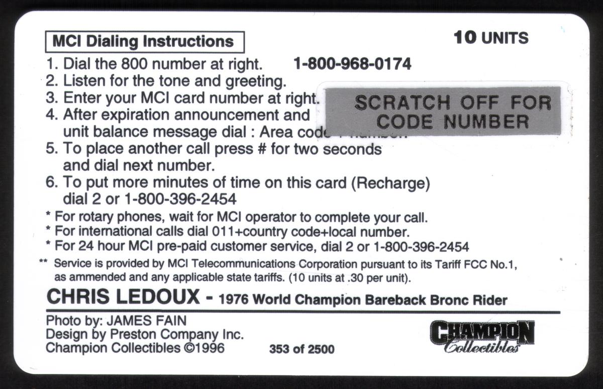 Keywords: Sports: Dan Hubbell, cow, cattle, animals, horse, rodeo, mci, ted nuce, chris ledoux, loyd ketchum, wayne herman, marvin garrett, robert etbauer, billy etbauer, cody custer, sherry cervi, allen bach, bobby hurley, preston company, Champion Collectibles