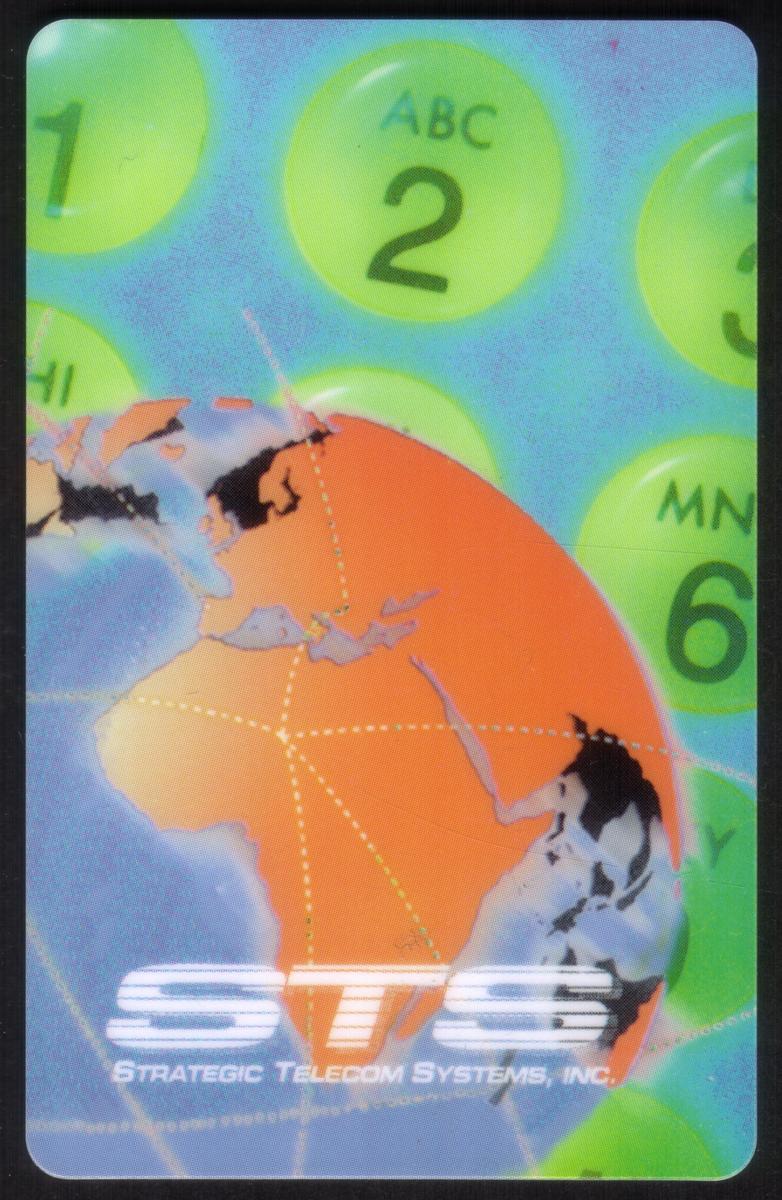 This collectible phone card features a bold design showcasing the Cable & Wireless and Strategic Telecom Systems collaboration. The card prominently displays a telephone dialing pad centered on the image, symbolizing telecommunications. Inclusive in the design is a globe that measures 10 meters, emphasizing global connectivity. A stylized tree appears to the side, adding a natural element to the card’s theme.