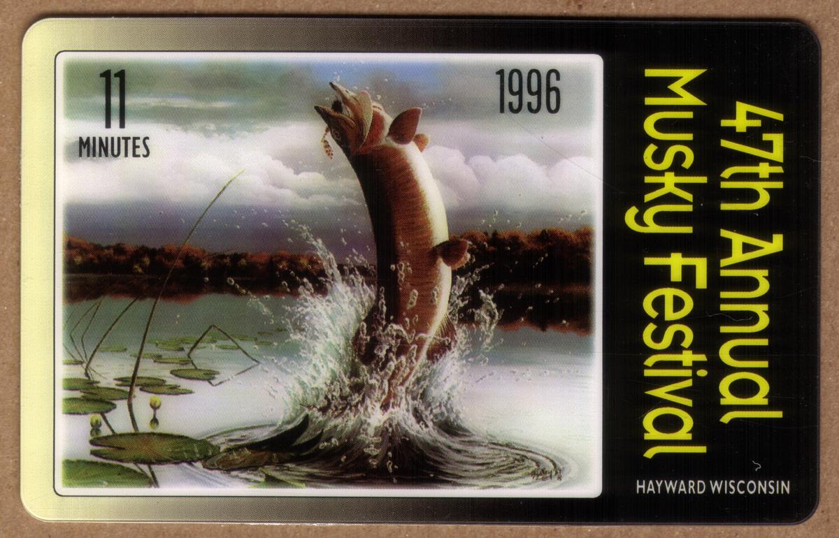This collectible promotional card commemorates the 47th Annual Musky Festival held in 1996 in Hayward, Wisconsin. The card’s design features imagery related to fishing, reflecting the event’s focus on musky fishing. The Musky Festival is a community festival that celebrates fishing and the outdoors, and this card specifically marks the 1996 celebration organized by Treejerk Promotions.