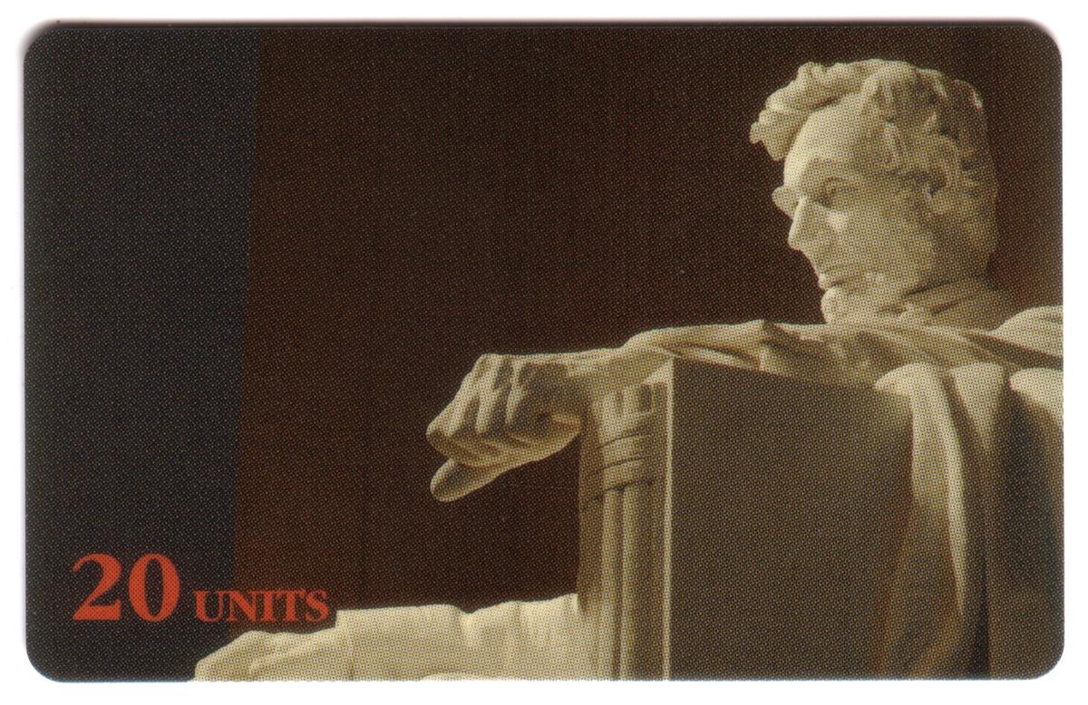 The card blends themes of sightseeing and travel with Americana by showcasing an important political monument recognized internationally. It is a collectible phone card, designed to appeal to users interested in U.S. landmarks, political history, and travel memorabilia. The card’s clean presentation emphasizes the Lincoln Memorial’s architectural beauty and cultural significance without other distracting graphics or elements.
