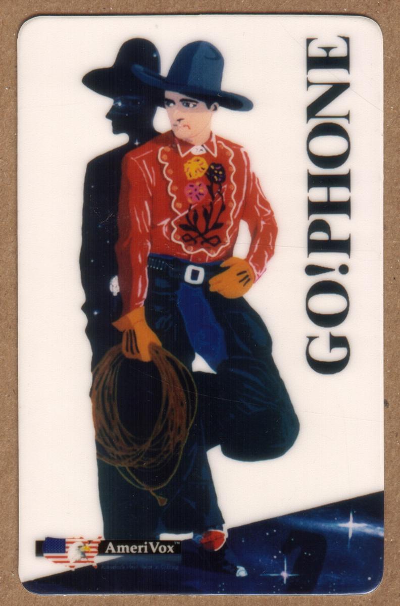 The design uses a warm color palette, blending earth tones that complement the Western theme. The typography is bold and clear, making all text easy to read. This collectible card is part of the Go!Phone series, emphasizing artistic renditions associated with vintage American pop culture, specifically Western cinema.