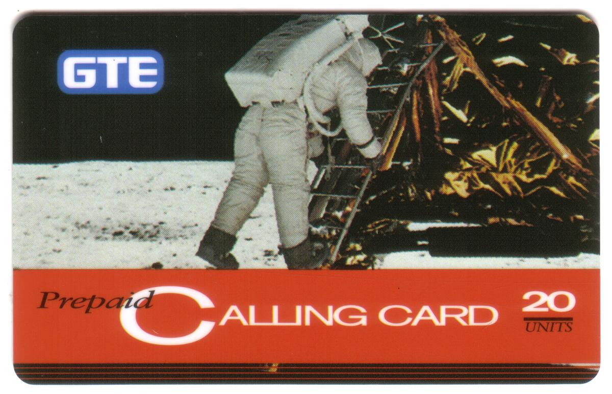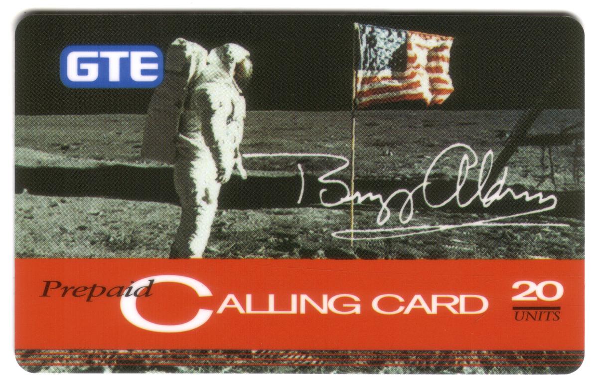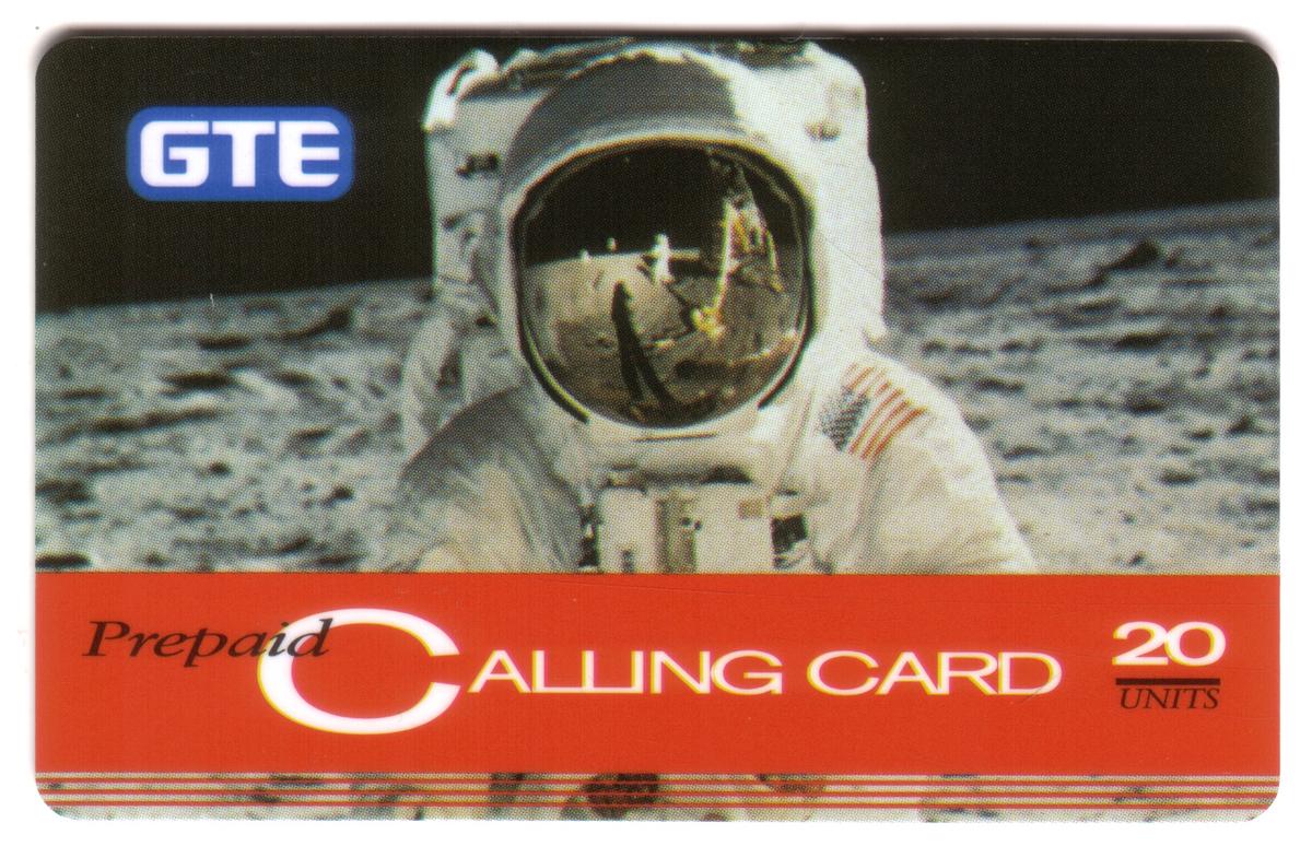 These three prepaid calling cards from GTE are part of the NASA Series 25th Anniversary Lunar Landing Set. Each card features a different iconic photograph from the Apollo 11 moon landing mission.