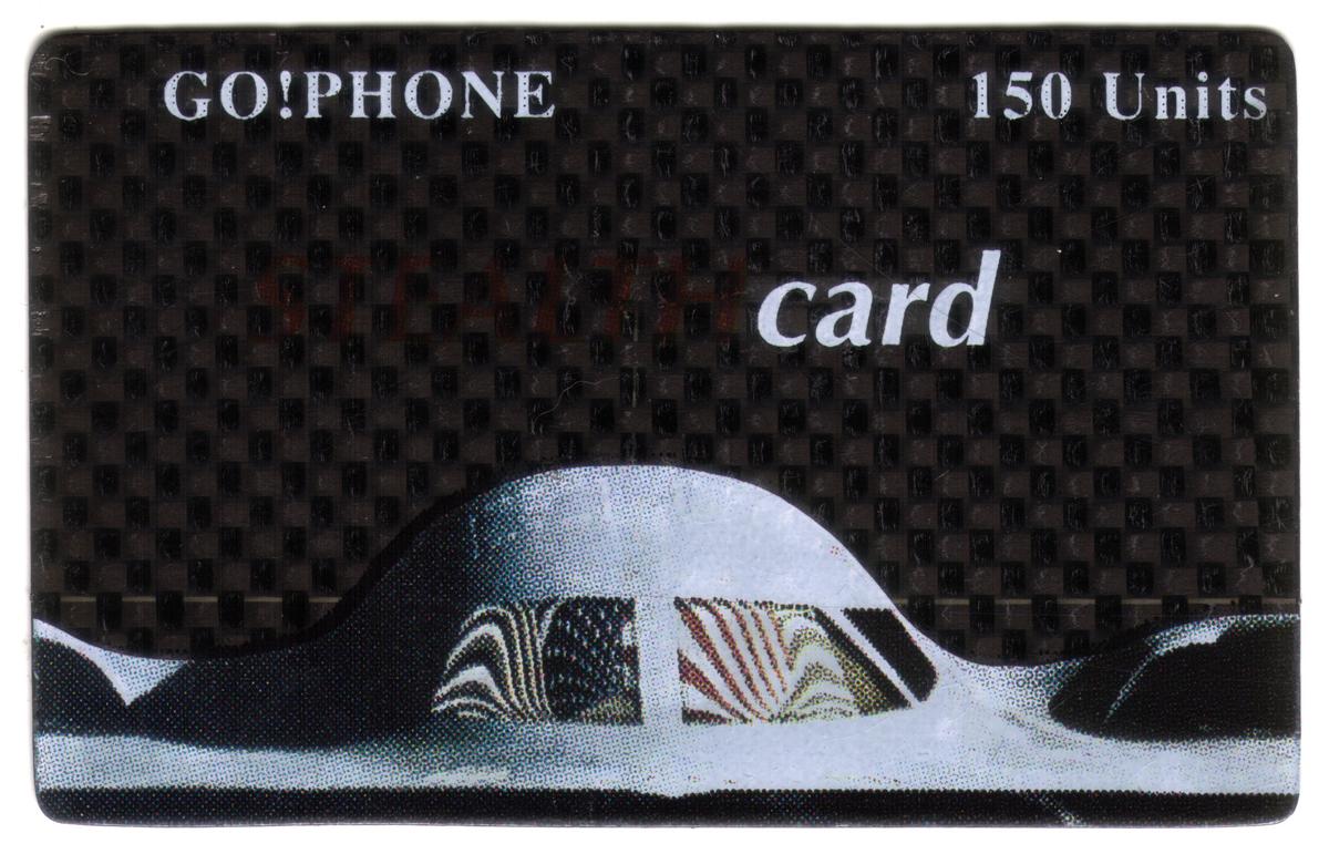 Clear text on the card includes the phrases “Stealth Fighter,” “American Flag,” “Military 150u,” and “Carbon Fiber,” which underscore the themes of advanced military technology and American patriotism. The card’s layout also includes the branding “go-phone,” “gophone,” or “go phone,” signifying its use as a phone card. The front art balances detailed aircraft imagery with a sleek, modern design characteristic of collectible phone cards from the mid-1990s.