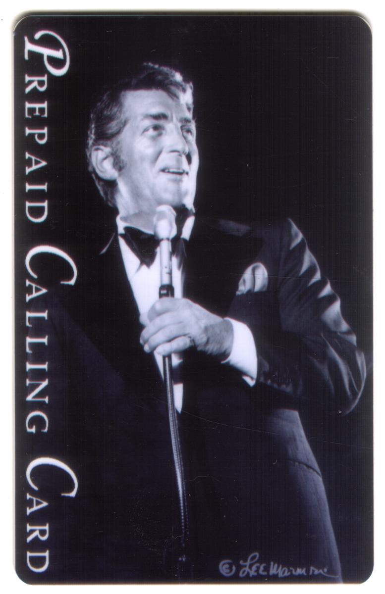This card is associated with Strategic Telecom Systems and prominently aligns with entertainment themes, featuring one of Hollywood's legendary film stars and singers. The combination of Dean Martin’s image and the prepaid calling card format highlights its nature as a collectible item related to famous personalities and classic American show business.
