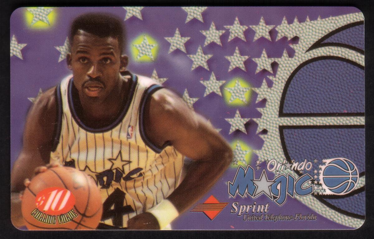 This collectible item is a sealed basketball-themed card issued in January 1995 by United Telephone of Florida with a $10 value. It prominently features the Orlando Magic, a team from the National Basketball Association (NBA). The design centers on Anthony Bowie, a player associated with the Orlando Magic during that era. The card includes official basketball-related imagery such as basketballs, logos, and trademarks connected to the Orlando Magic franchise. The overall style reflects the mid-1990s basketball and NBA visual elements.