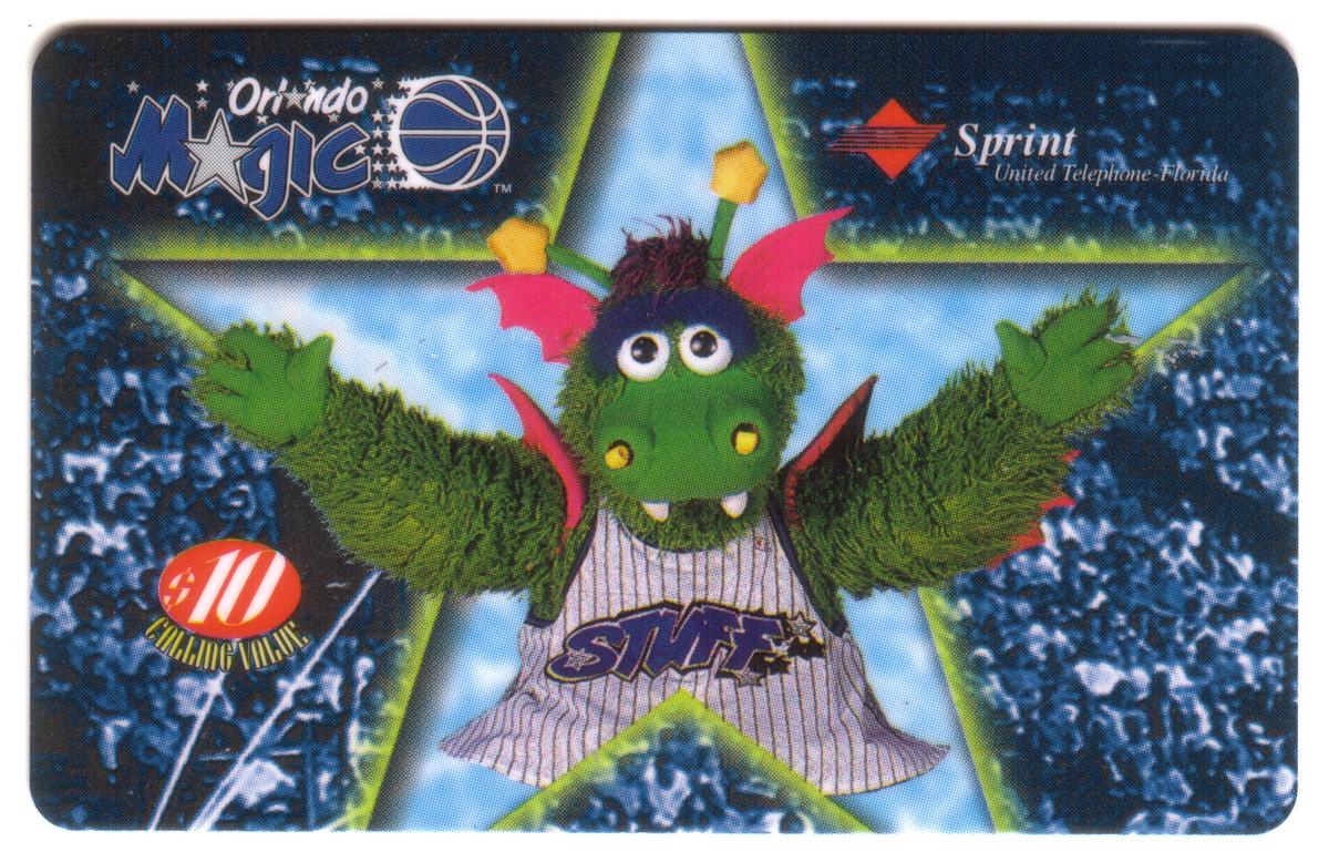 The design integrates the official trademarks and basketball-related imagery connected to the National Basketball League and the Orlando Magic franchise. The vibrant colors and playful mascot emphasize the connection to professional basketball and fan culture of the mid-1990s. This phone card combines sports and telecommunications branding for collectible and practical use.