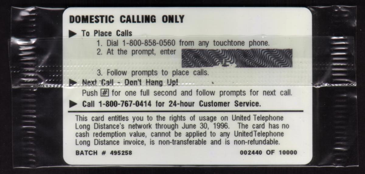 Since we have the world's largest inventory of USA phonecards for collectors, you will not necessarily receive the identical serial/batch/PIN number that we have scanned/pictured.