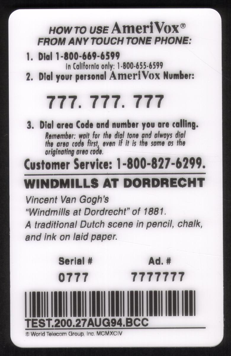 Since we have the world's largest inventory of USA phonecards for collectors, you will not necessarily receive the identical serial/batch/PIN number that we have scanned/pictured.