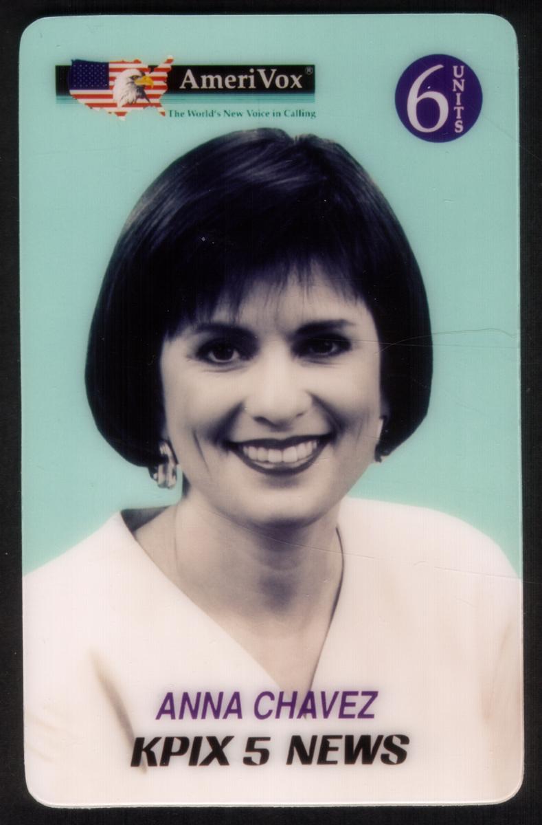 This collectible phone card features a prominent image highlighting Anna Chavez, a reporter associated with Channel 5 KPIX News in Oakland, California. The card emphasizes newscasting and television news broadcasting within the San Francisco Bay Area, specifically related to CBS News journalism. The photograph of Anna Chavez shows her in a professional setting, symbolizing her role in media and reporting for the region.