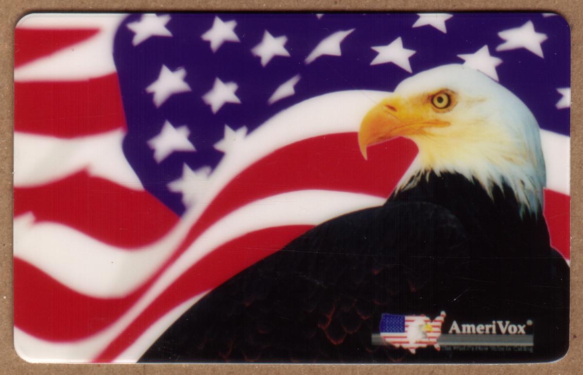 In the lower right corner, the logo "AmeriVox" is printed alongside a small graphic of the United States map filled with the American flag design. This branding ties the card to Americana and American symbolism themes, emphasizing patriotism and national pride.