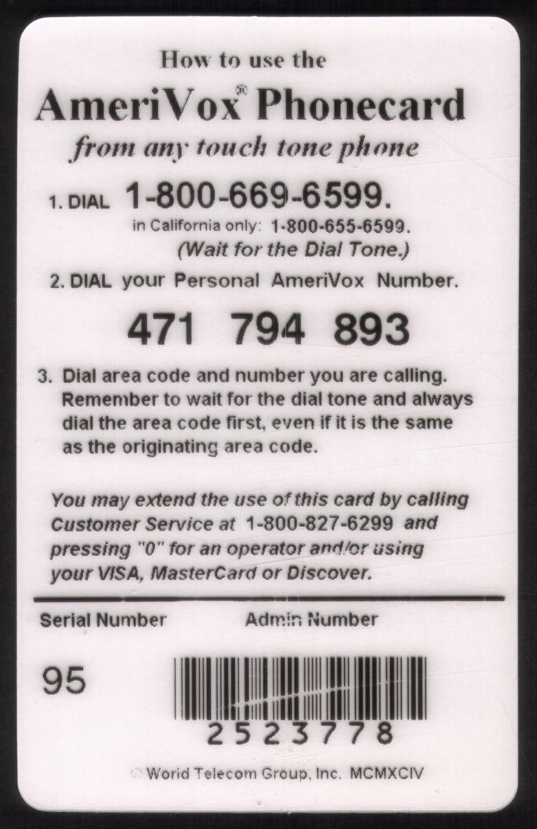 Since we have the world's largest inventory of USA phonecards for collectors, you will not necessarily receive the identical serial/batch/PIN number that we have scanned/pictured.