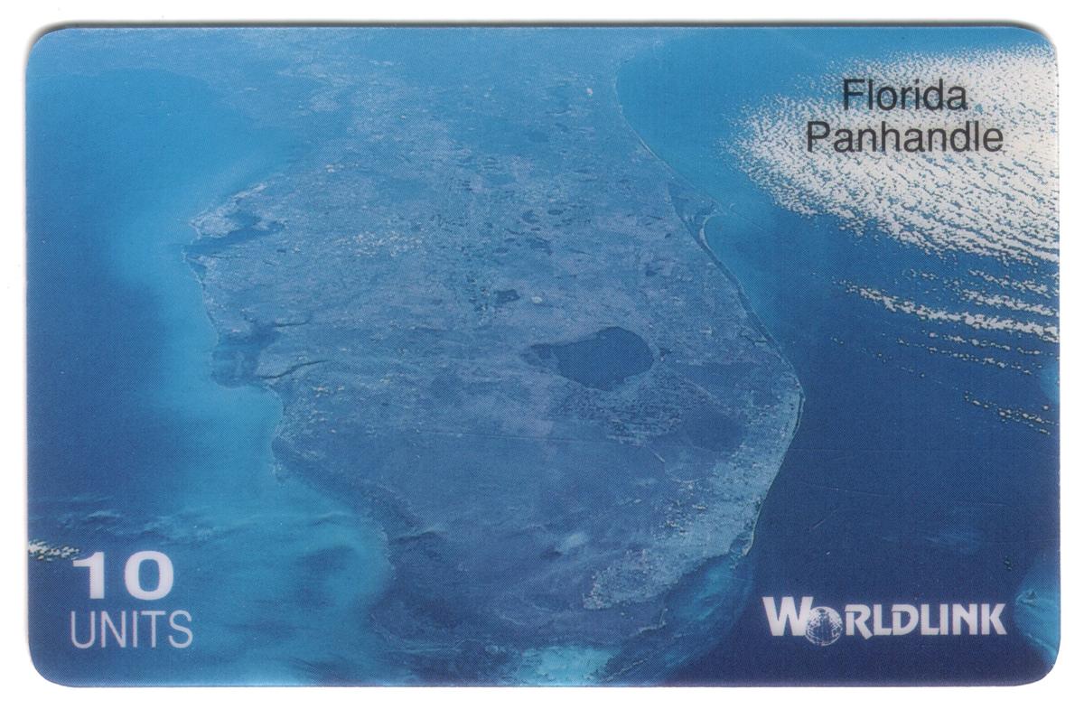 Overall, this phone card highlights the travel and sightseeing allure of the Florida Panhandle, combining natural coastal scenery with practical telecommunication function provided by WorldLink Commun.