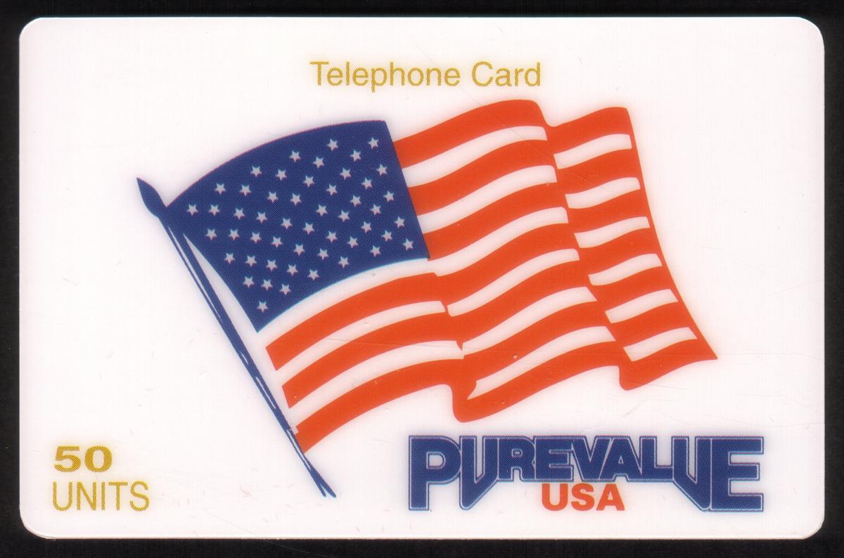 Overall, this card presents a clean and clear tribute to American history through its depiction of the national flag and connection to PureValue USA. The layout is straightforward, highlighting the patriotic imagery alongside the issuing company’s logos and product description.