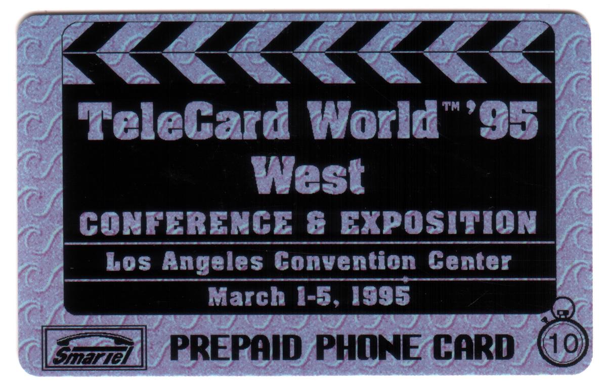 This TeleCard is a collectible item tied directly to the TeleCard World West '95 event in Los Angeles, CA, reflecting the gathering of enthusiasts and collectors centered on phone cards during that time. Its presentation is straightforward, primarily textual, with no additional imagery aside from the background color and text layout.