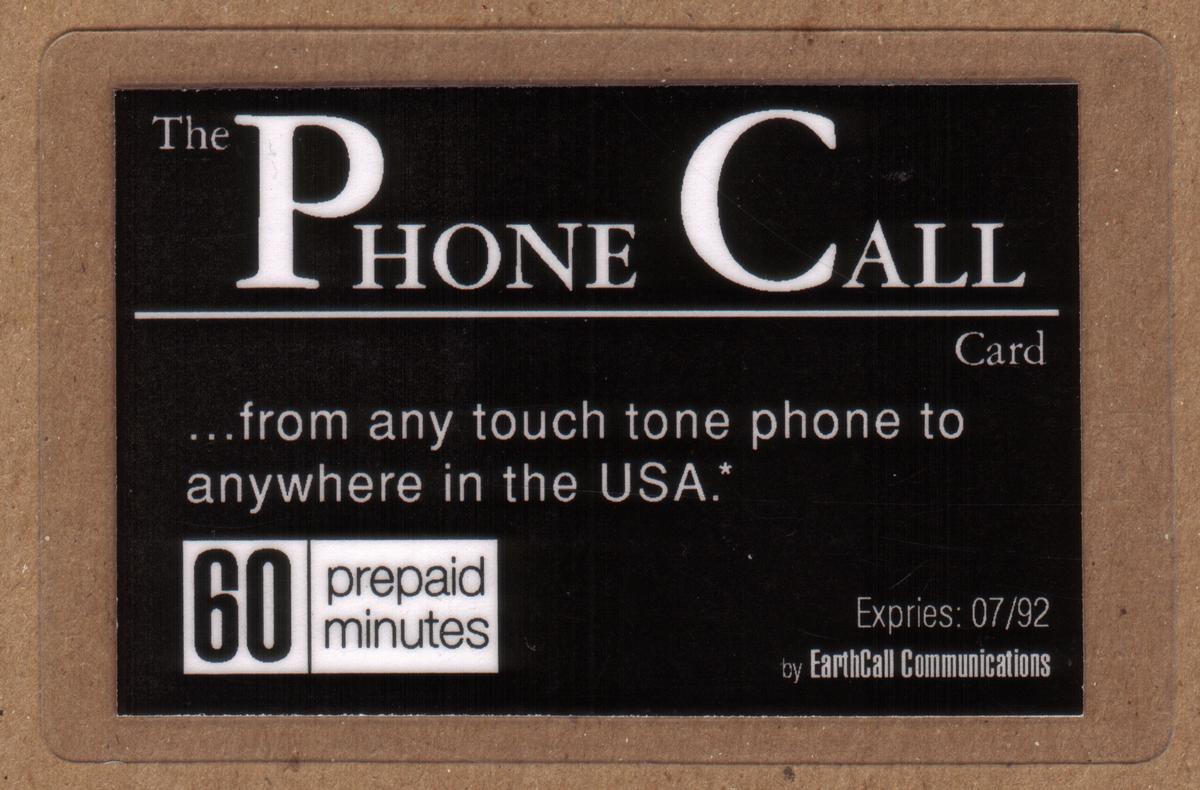 Overall, this phone card serves as a prepaid calling card produced by EarthCall, intended for use on touch tone phones across the USA, with clear indications of its call duration and expiration date.