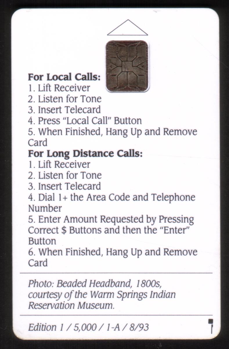 Keywords: Americana, Warm Springs Indian Reservation Museum, oregon, native american artifact, traditions, sacred artifacts, confederated tribes of the warm springs reservations, tribal, wasco, paiute, chip card, us west, schlumberger chip, U.S. West Commun.