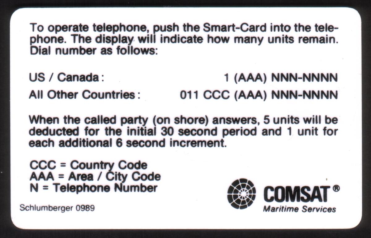 Keywords: setof, world globe, satellite, telephones, chip card, ships, svc, stored value, smart card, ocean, chip sc-4 gold, COMSAT Mobile Comm.