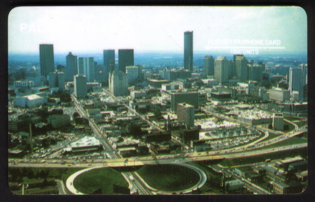 This card is part of the GEC Plessey Telecom set of collectible phone cards, highlighting the Atlanta cityscape at daylight, with clear visibility of buildings and highways. The card’s photographic design and printed details emphasize its role as a functional and collectible payphone card issued during the late 1980s in connection with the Pace telecommunications exhibition.