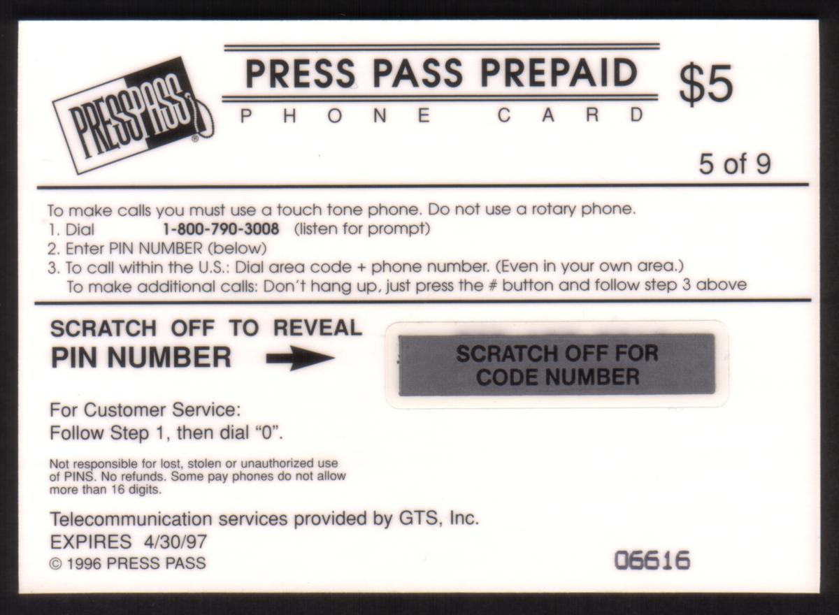 Since we have the world's largest inventory of USA phonecards for collectors, you will not necessarily receive the identical serial/batch/PIN number that we have scanned/pictured.