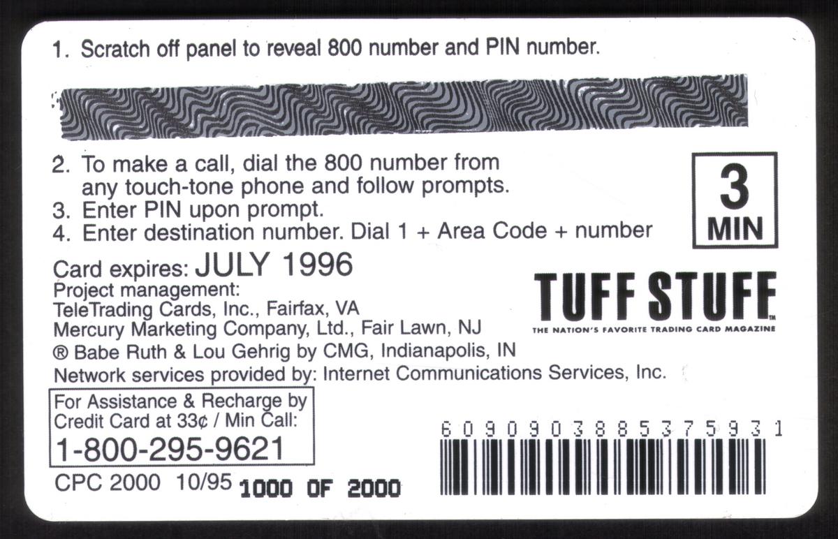 Since we have the world's largest inventory of USA phonecards for collectors, you will not necessarily receive the identical serial/batch/PIN number that we have scanned/pictured.