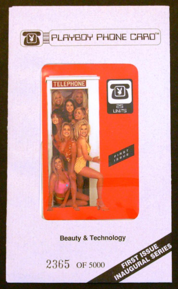 The card is preserved inside its original envelope, which is visible beneath it in the image. This envelope helps maintain the card’s condition and confirms its promotional nature. The combination of the Playboy branding, the specific image of a model in a phone booth, and the clear display of the issuing telephone company’s name make this a distinctive piece for collectors interested in promotional phone cards tied to men’s magazines and entertainment.