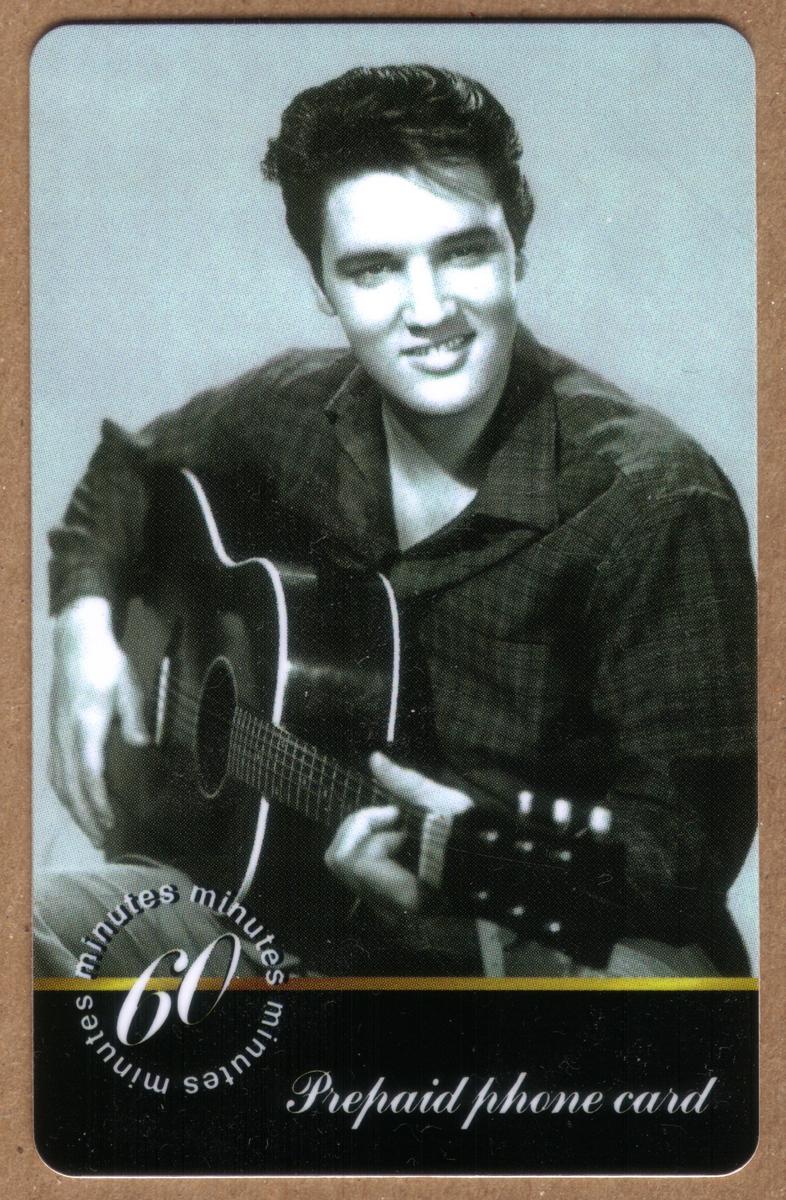 Elvis Presley rock and roll legend with guitar, 60-minute prepaid phone card from 1998, celebrating his music and cultural influence. |