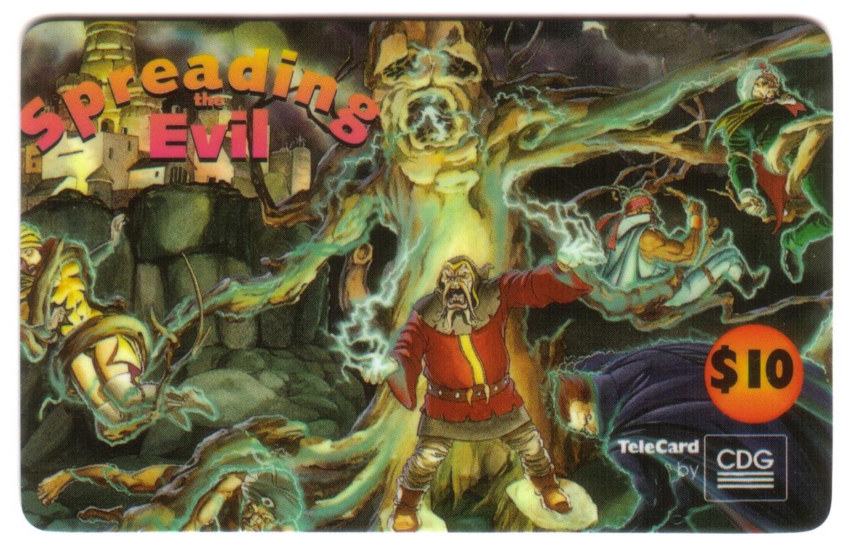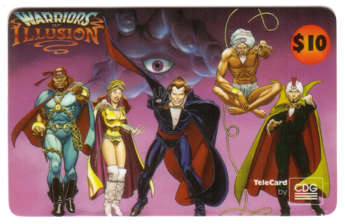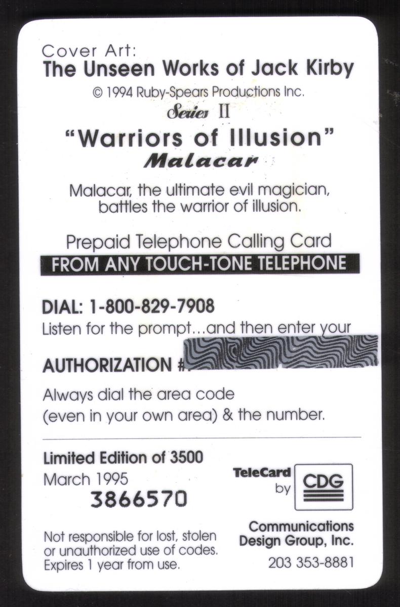 Jack Kirby fantasy and sci-fi themed phone cards from Unseen Works Series II featuring dark supernatural scenes, futuristic battles, and mystic warriors. |