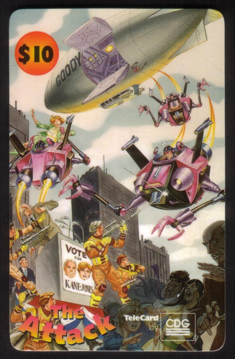 This card is collectible and part of a series emphasizing creativity and comic book artistry, focusing on characters and scenes that blend fantasy, science fiction, and superhero genres. The use of elements like a goody blimp and alien figures underlines the card’s connection to imaginative storytelling and iconic cartoon visuals.