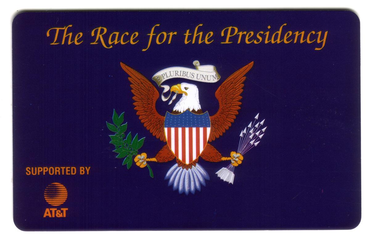 The overall design is clean and patriotic, emphasizing key elements of the Great Seal with clear, bold imagery. The combination of the AT&T branding and the Great Seal symbolizes communication and American heritage linked to the theme of the presidential race.