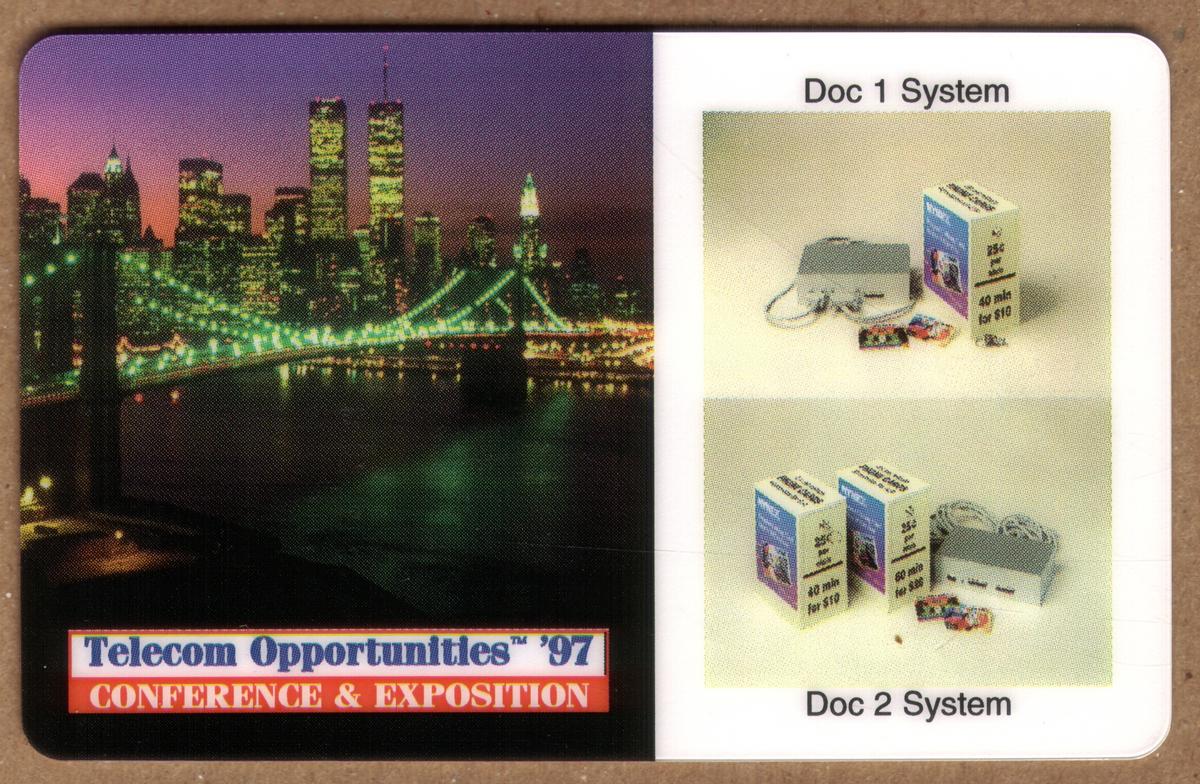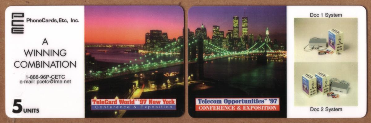 Keywords: new york skyline, world trade center, wtc, twin towers, bridge, a winning combination, telecard events, expos, show cards, doc 1 system, doc 2 system, puzzle set, pce, telecard world 97, telecom opportunities conference & exposition, 1997, EastWest Telecom