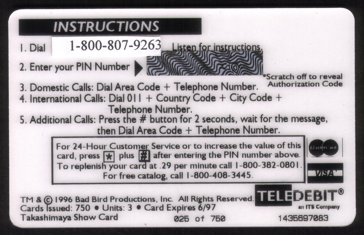 Since we have the world's largest inventory of USA phonecards for collectors, you will not necessarily receive the identical serial/batch/PIN number that we have scanned/pictured.